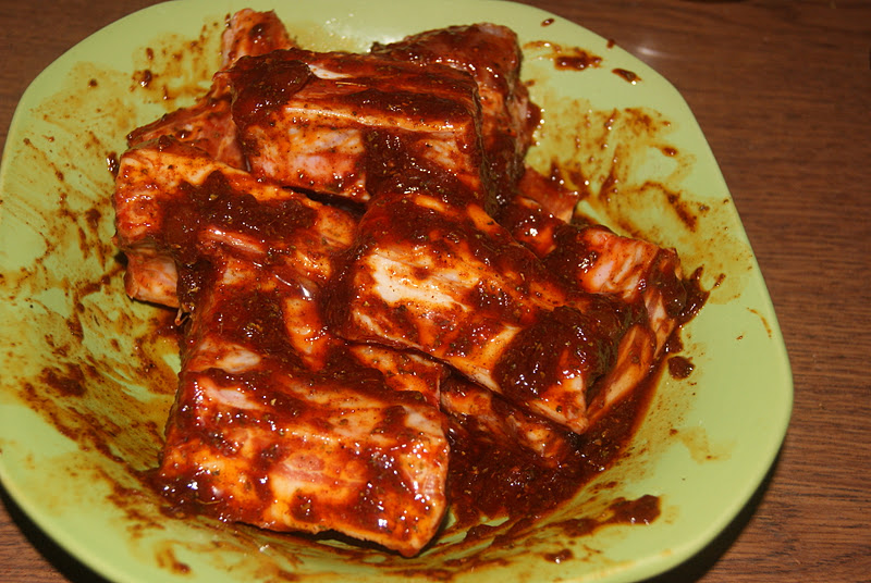 Eksperymentuję ze smakami marynat do żeberek .Podstawa to olej , miód i ketchup ( takie wstępne BBQ ) - a potem szczypta tego-szczypta tamtego . Piernik ( lub przyprawę do piernika do mięs już używałam )- okazuje się , że z żeberkami też się sprawdza .