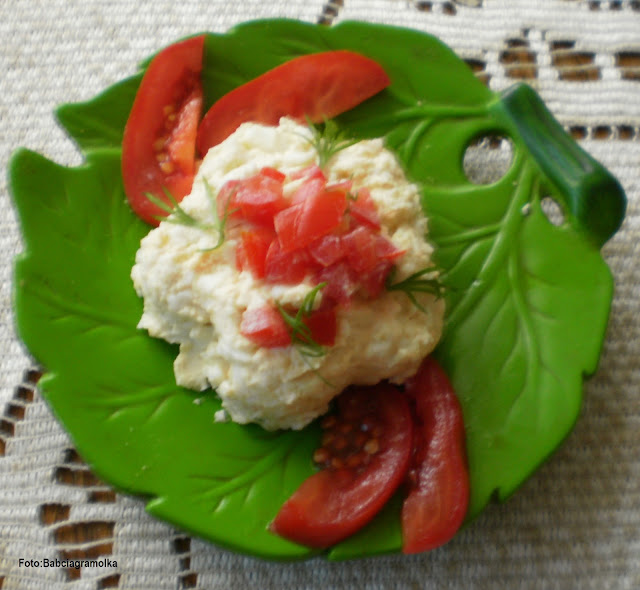 majonez , jogurt, pomidor i wymieszać .Doprawić.
